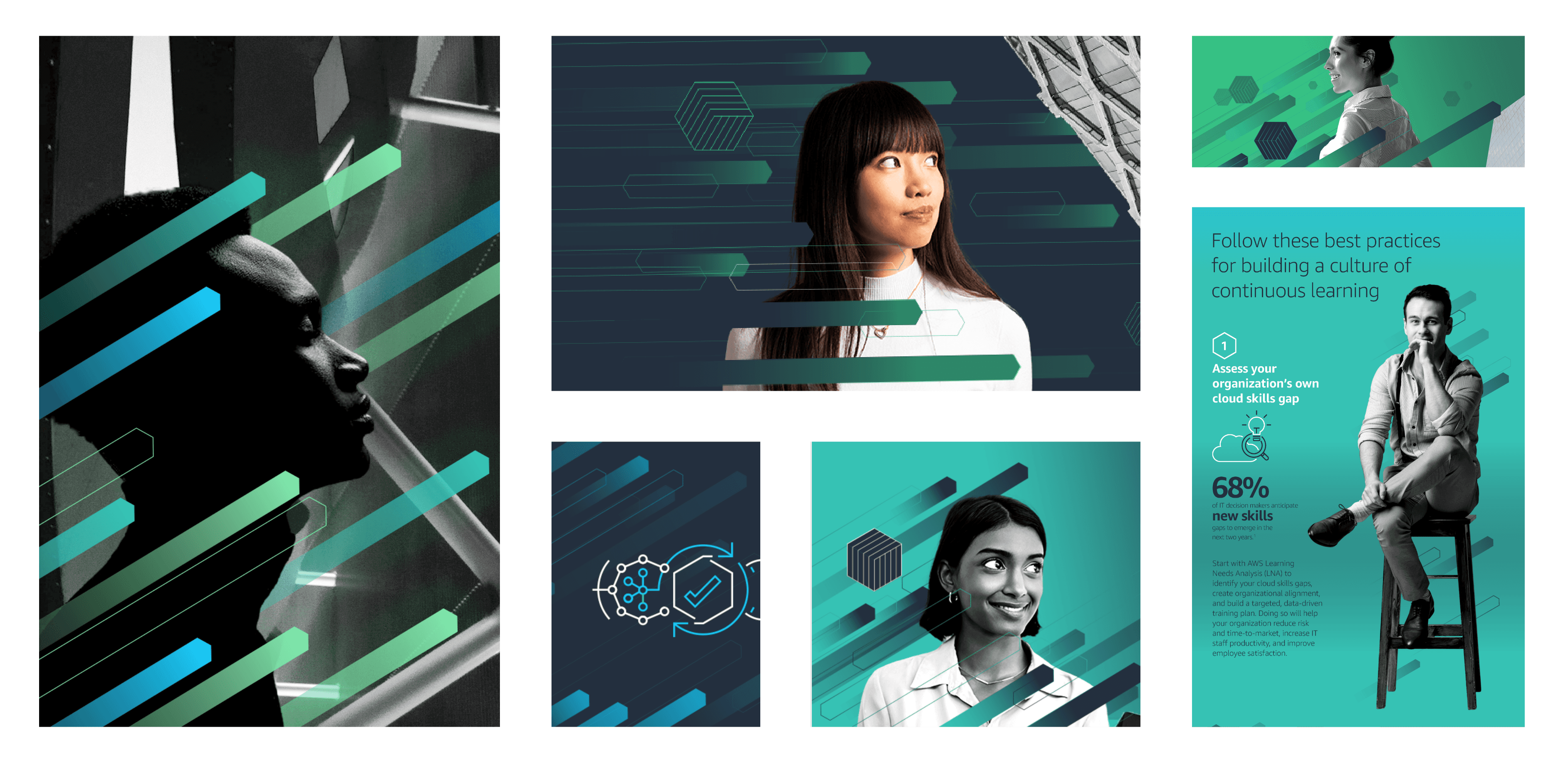 Switching things up, here's a fresh approach: spotlighting business leaders, embodying the transformative essence of continuous learning. It's a bold move, bringing influential faces front and center, elevating the AWS Training & Certification narrative to new heights. Those upward lines? Pure growth chart vibes. And with a rich line-up including dynamic videos, captivating podcasts, and deep-dive blogs, it all culminates in an immersive landing page. This vision? AWS couldn't resist jumping onboard.